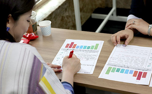 진단결과만을 본 후 조별로 그 사람에 대한업무, 관계의 장단점을 도출했던 작업